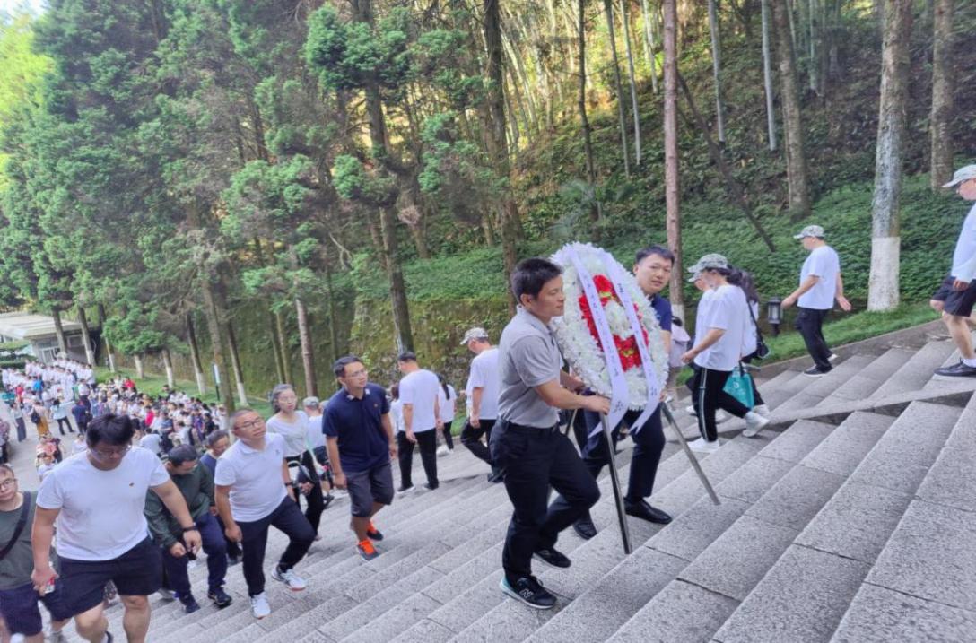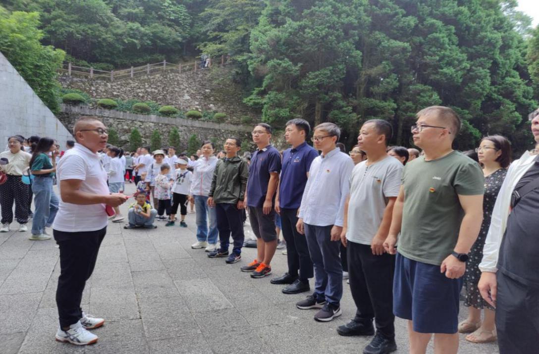 缅怀革命先烈。7月13日上午,全体党员同志在院党委书记叶文忠的带领下,怀着崇敬肃穆的心情整齐列队,在井冈山革命烈士陵园拾级而上,共同向4.8万余名长眠井冈山的先烈们敬献花圈,默哀鞠躬,致以深切缅怀。石梯旁香柏黄杨,无声地述说着战火纷飞的惊险往事和“为了主义不畏牺牲”的崇高精神。随后,全体党员同志在鲜艳的党旗下,追寻初心使命,重温入党誓词。