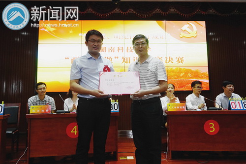 经过激烈的必答题、抢答题以及风险题的轮番作答后,商学院党委获得一等奖,马克思主义学院党委、人文学院党委获得二等奖,三等奖则由机关党委、离退休工作党委和物理与电子科学学院党委获得。赛后举行了简朴热烈的颁奖仪式,刘德顺、朱川曲、刘宇文分别为获奖参赛队代表颁发了奖牌和证书。