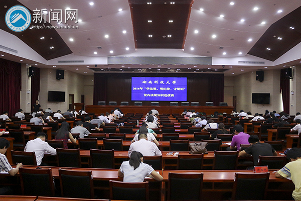 6月7日下午2:30,我校在综合楼A附楼五楼报告厅举行2016年“学法规,明纪律,守规矩”党内法规知识选拔赛,各直属党委组成25支队伍(每支队伍3人)参加比赛,校党委组织部、纪委办相关人员担任监考。