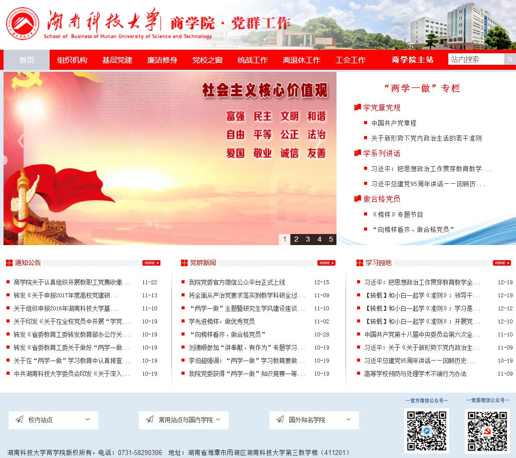 2016年7月以来,为更好地开展基层党建工作,商学院党委在坚持“线下”传统党员教育管理的基础上,积极探索“线上”党建新模式,采用“线上+线下”双驱动模式积极推动党建工作,利用新载体开辟基层党建新阵地。先后建立了“商学院党群网站”,“商学院教职工党员工作群”、“商学院党委支委工作群”、各支部工作群(7个教职工党支部和8个学生党支部)以及“湖南科技大学商学院党委”微信公众号。其中党委微信公众平台设有“两学一做”、“党建直播”、“廉洁修身”三个栏目。目前,网站、QQ群、微信平台已成为学院党委工作的三大重要网络宣传阵地,也成为了服务学院、服务师生、服务党员群众的新载体。