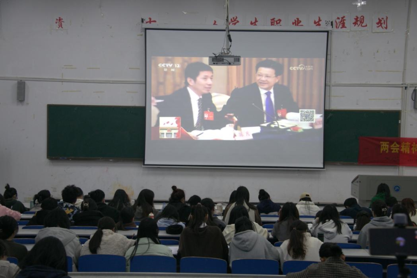 2024年3月19日,湖南科技大学商学院在一教204举行了以“学习两会精神,争做新时代好党员”为主题的学生党员思想教育大会。商学院党委副书记王鹤莅临现场指导,全体辅导员老师出席会议,全体学生党员参加学习会议。