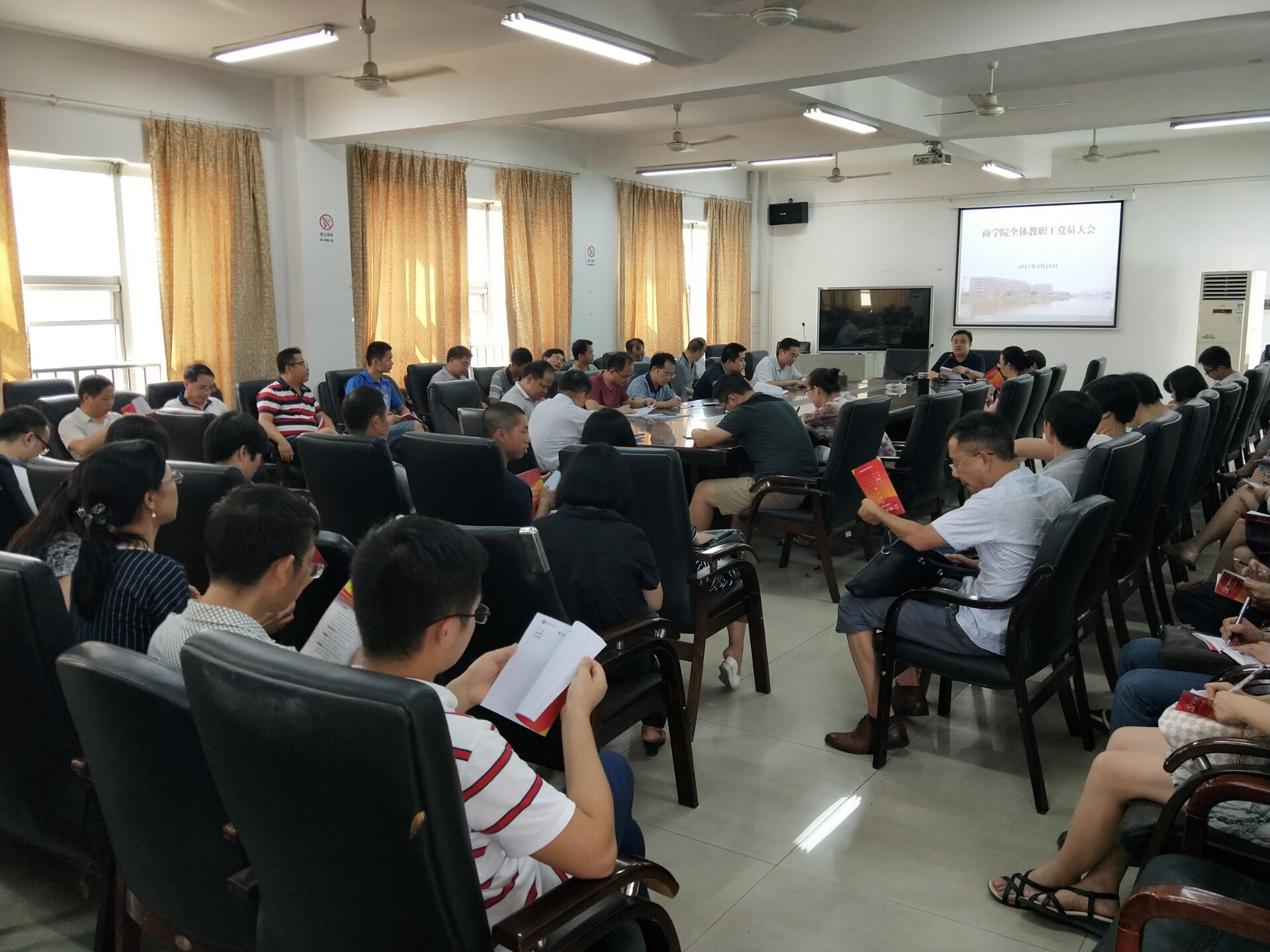 2017年9月26日,院党委书记潘爱民同志在三教411会议室主持召开了全体教职工党员大会。