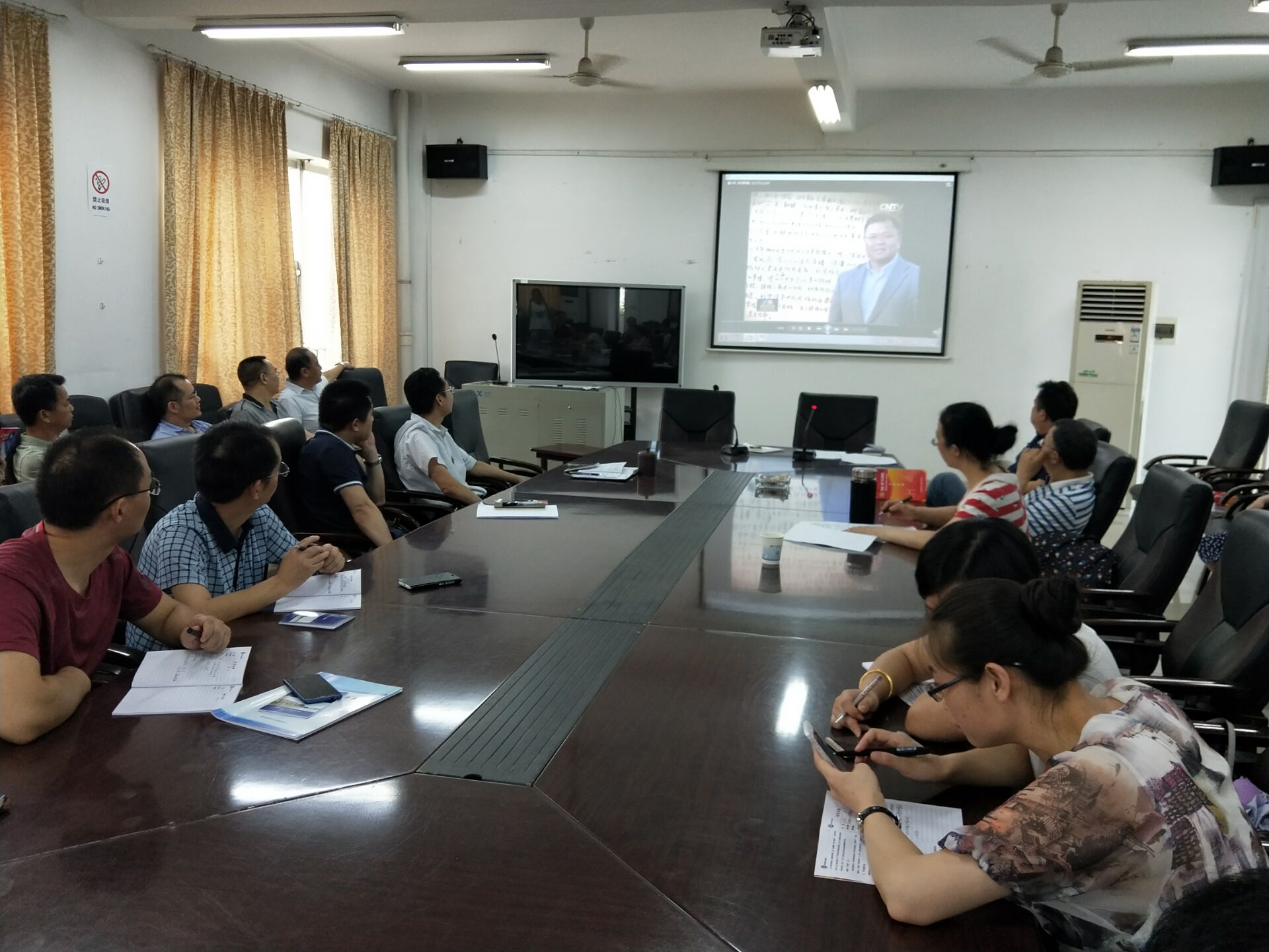 随后,潘爱民传达了《中共中央组织部中共中央宣传部中共教育部党组关于认真贯彻习近平总书记重要指示广泛开展向黄大年同志学习活动的通知》精神,并集体观看了中央电视台关于黄大年同志的视频报道。