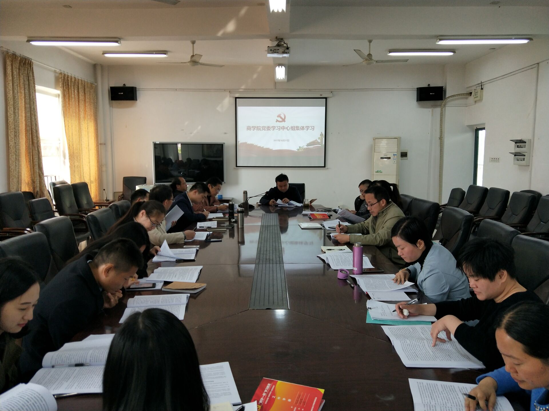 2017年10月31日上午,商学院党委学习中心组全体成员在三教411会议室集体学习十九大精神,本次学习由党委书记潘爱民同志主持。