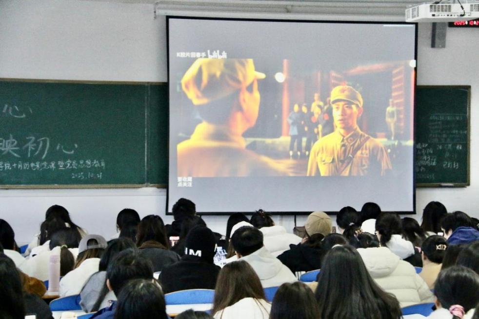 2025年10月21日下午,湖南科技大学商学院在第一教学楼603教室举办十月份电影党课暨学生党员思想教育活动。活动紧扣“华诞华章凝党心,征途征帆映初心”主题,将红色教育与思想淬炼深度融合,全体学生党员齐聚一堂、共同参与。