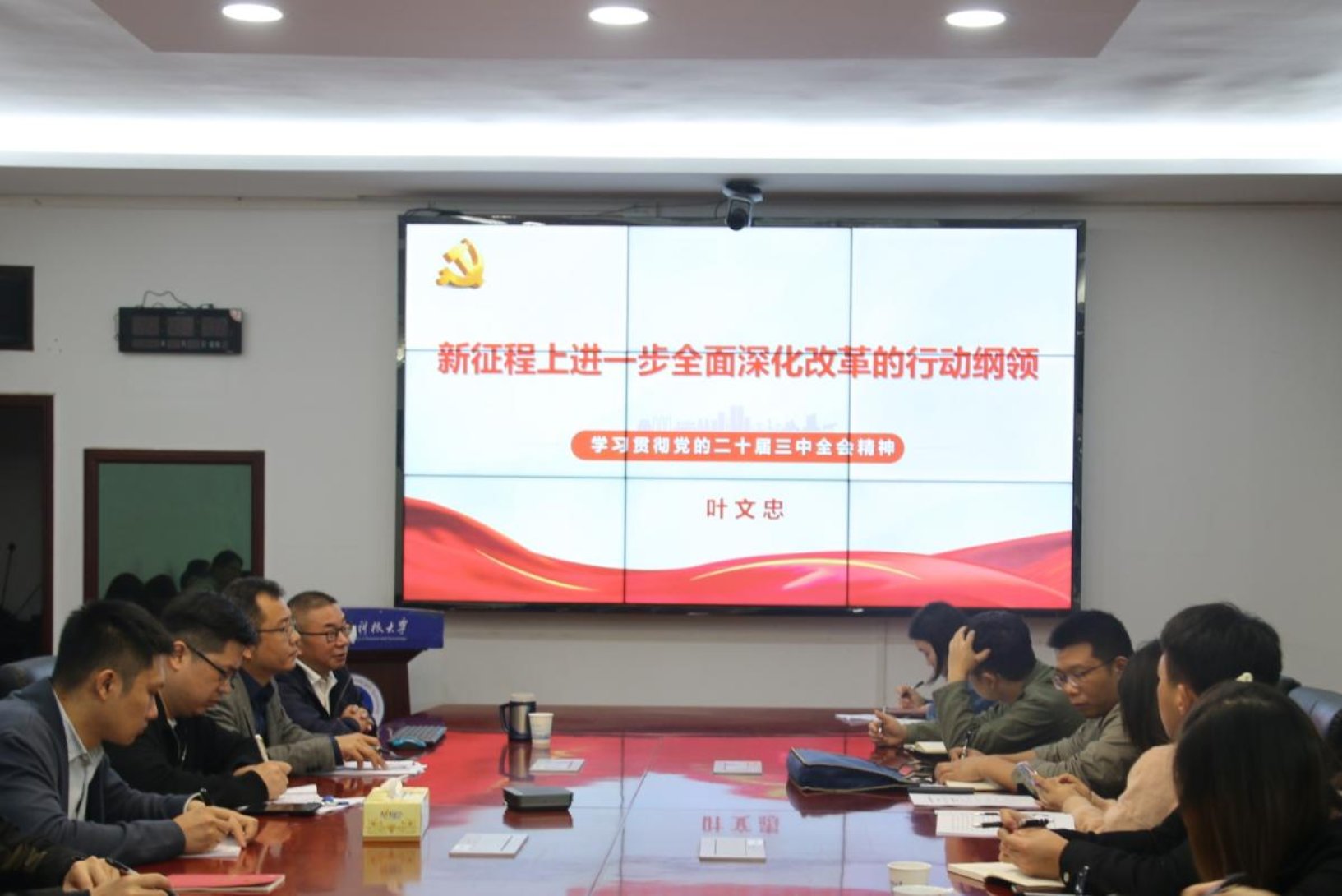叶文忠在讲课时强调,党的二十届三中全会是在以中国式现代化全面推进强国建设、民族复兴伟业的关键时期召开的一次十分重要的会议,具有划时代的里程碑意义。学院全体党员干部要深学细悟党的二十届三中全会精神,立足育人岗位、力行全会精神,紧紧围绕立德树人根本任务,主动融入和服务国家重大战略,以实干担当的作风推进学院高质量发展。