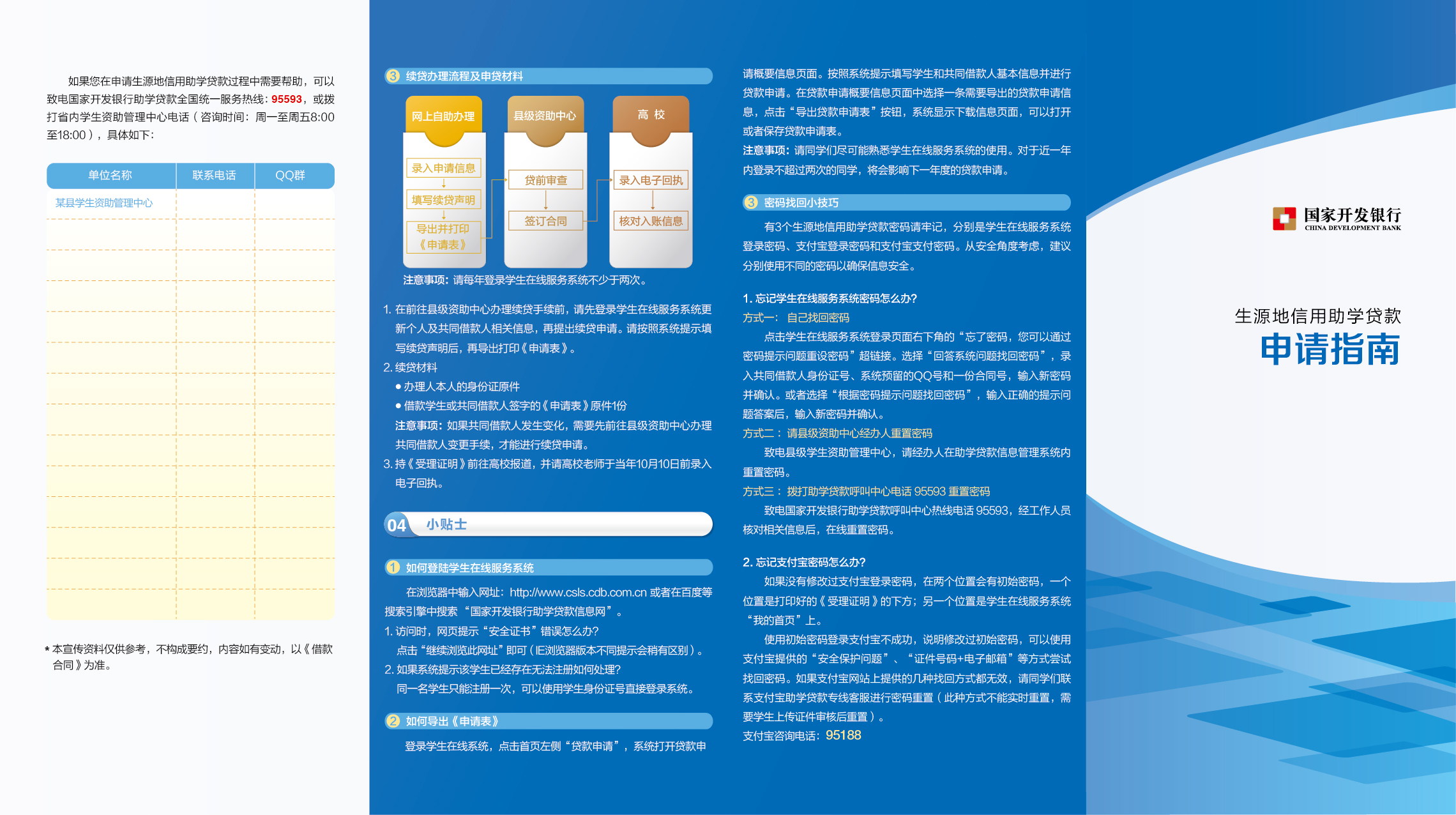 如通过上述方式无法重置密码,可拨打国开行助学贷款呼叫中心95593或联系县资助中心老师重置密码。