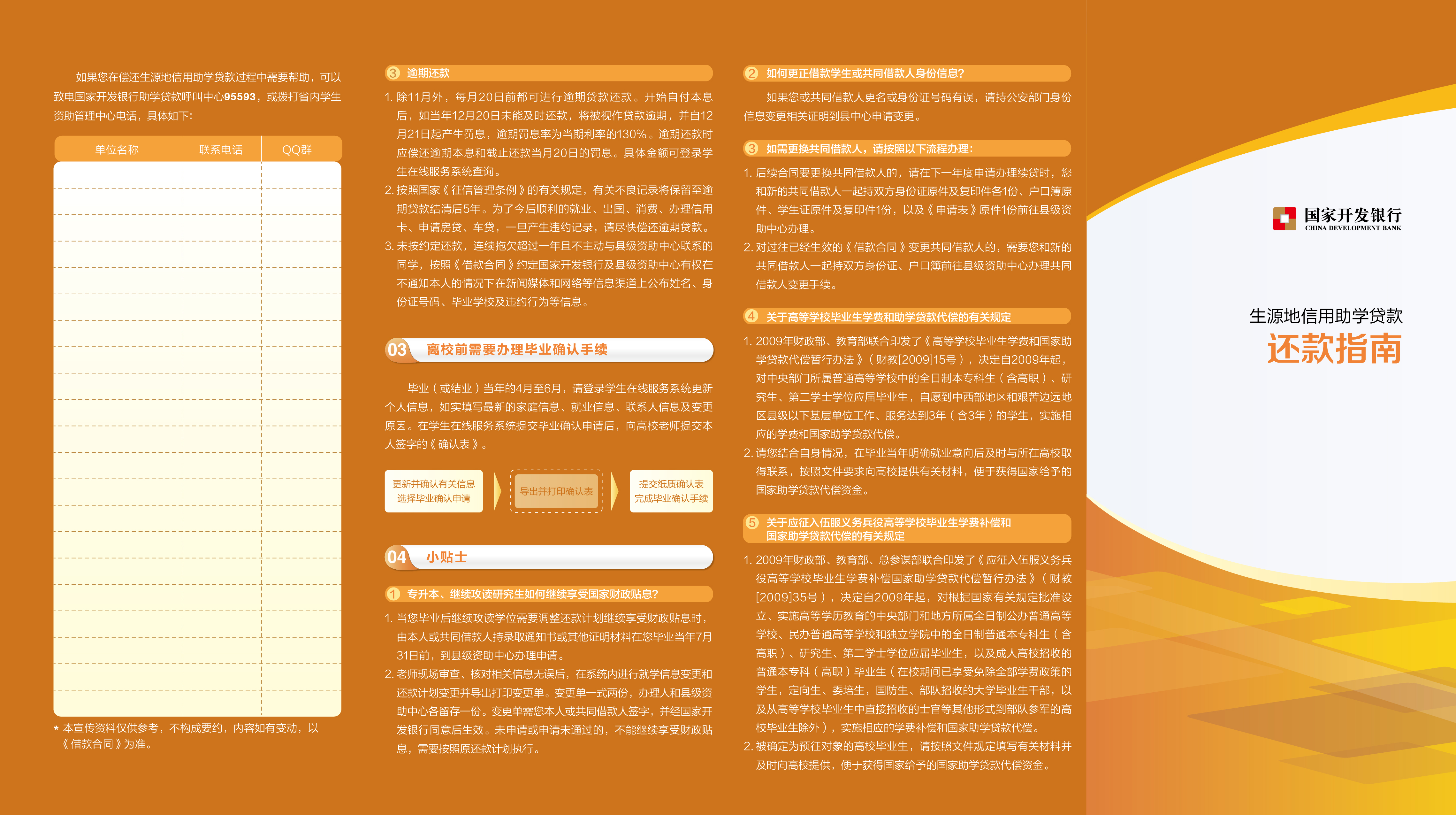为确保今年生源地信用助学贷款顺利推进,请各学院配合做好生源地信用助学贷款相关工作:1.请学院认真组织在校贷款学生的续贷申请工作,续贷说明要求学生从思想、学习、生活三个方面认真填写,2.请各学院将生源地助学贷款申请指南、还款指南、公告等资料放到学院网站、宣传栏、学生QQ群进行广泛宣传,让有意愿贷款的学生熟知生源地信用助学贷款的申请条件、办理程序等事项,提醒学生利用暑假尽早到当地县(市、区)教育局学生资助管理机构咨询并办理好生源地信用助学贷款。