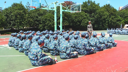 尽管汗水将迷彩服浸湿,同学们依旧保持挺胸抬头,没有丝毫懈怠。在一声声铿锵有力的口号下,同学们一丝不苟地完成了立正稍息、向右看齐、跨立转向、下蹲、起立等训练任务。经过一个上午的训练,同学们便能根据动作指令的发出做出迅速、正确且标准的反应。