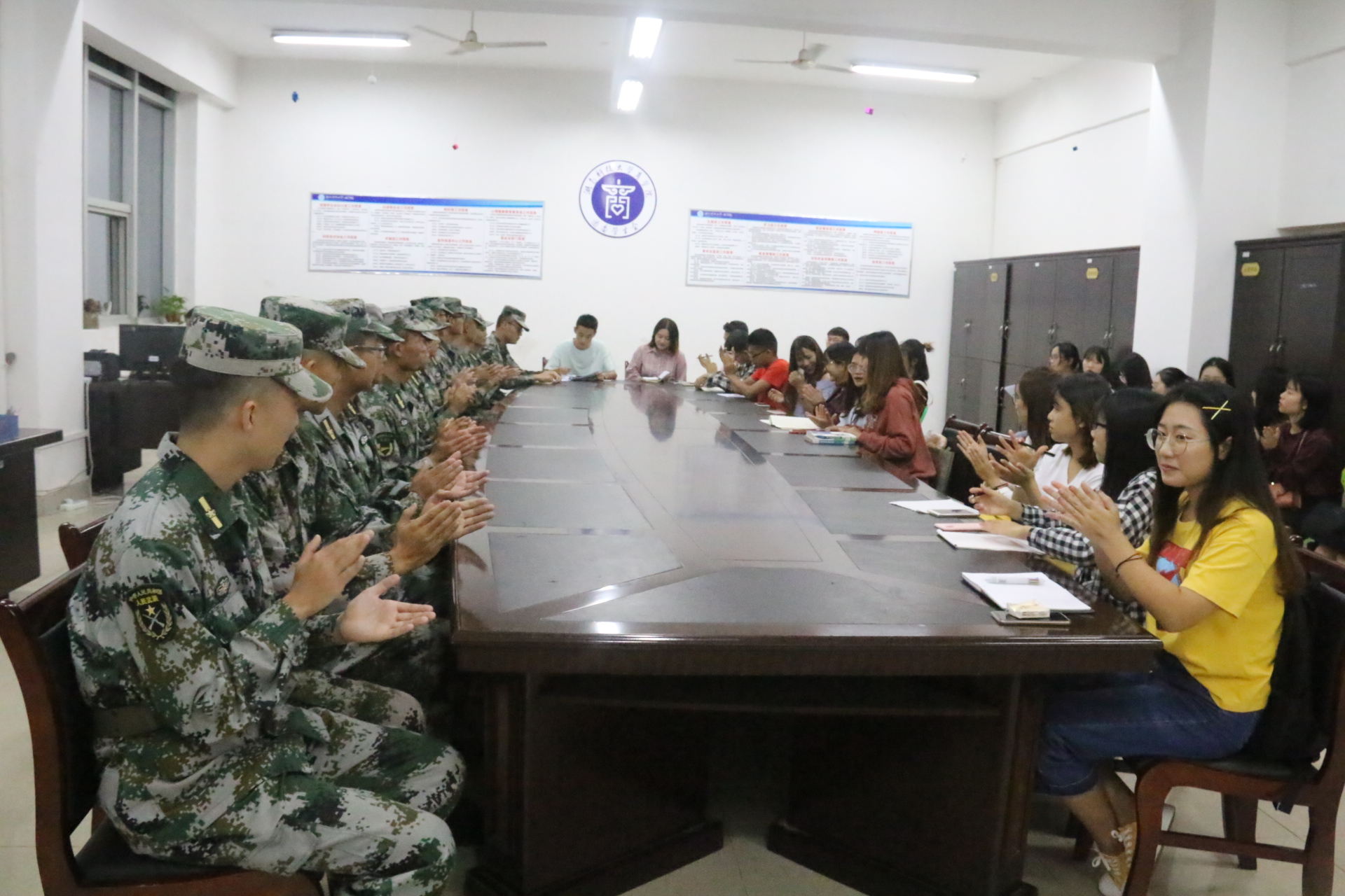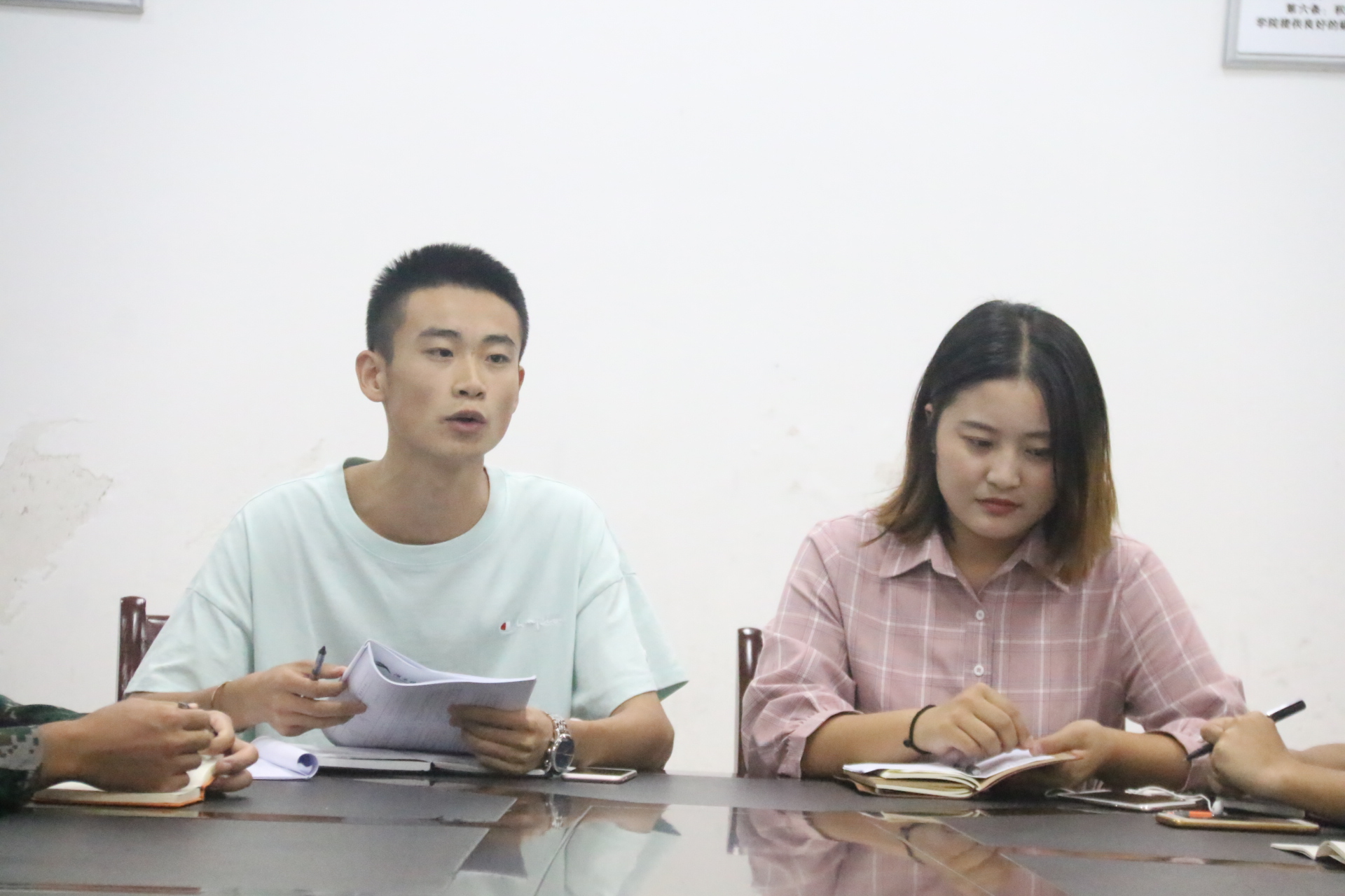 “召开本次见面会的目的是及时沟通军训期间可能出现的问题及其解决,保证训练顺利开展,希望大家踊跃发言。”见面会在石阿霞、翟广达的主持下召开。“大家好,我是一连连长吴锋龙,有多次带训经验……”从吴锋龙开始,各教官依次进行自我介绍并表明自己的工作态度和严格开展训练的决心。