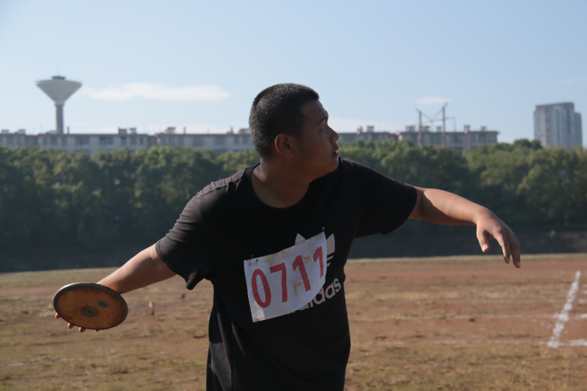 10月27日早上8:40,天空万里无云,男子组铁饼预决赛如约而至,旧北田径场上运动员们早已聚齐。商学院三名运动健儿为学院荣誉出战,他们分别是赵云涛、宋甘雨、杨宗霖。