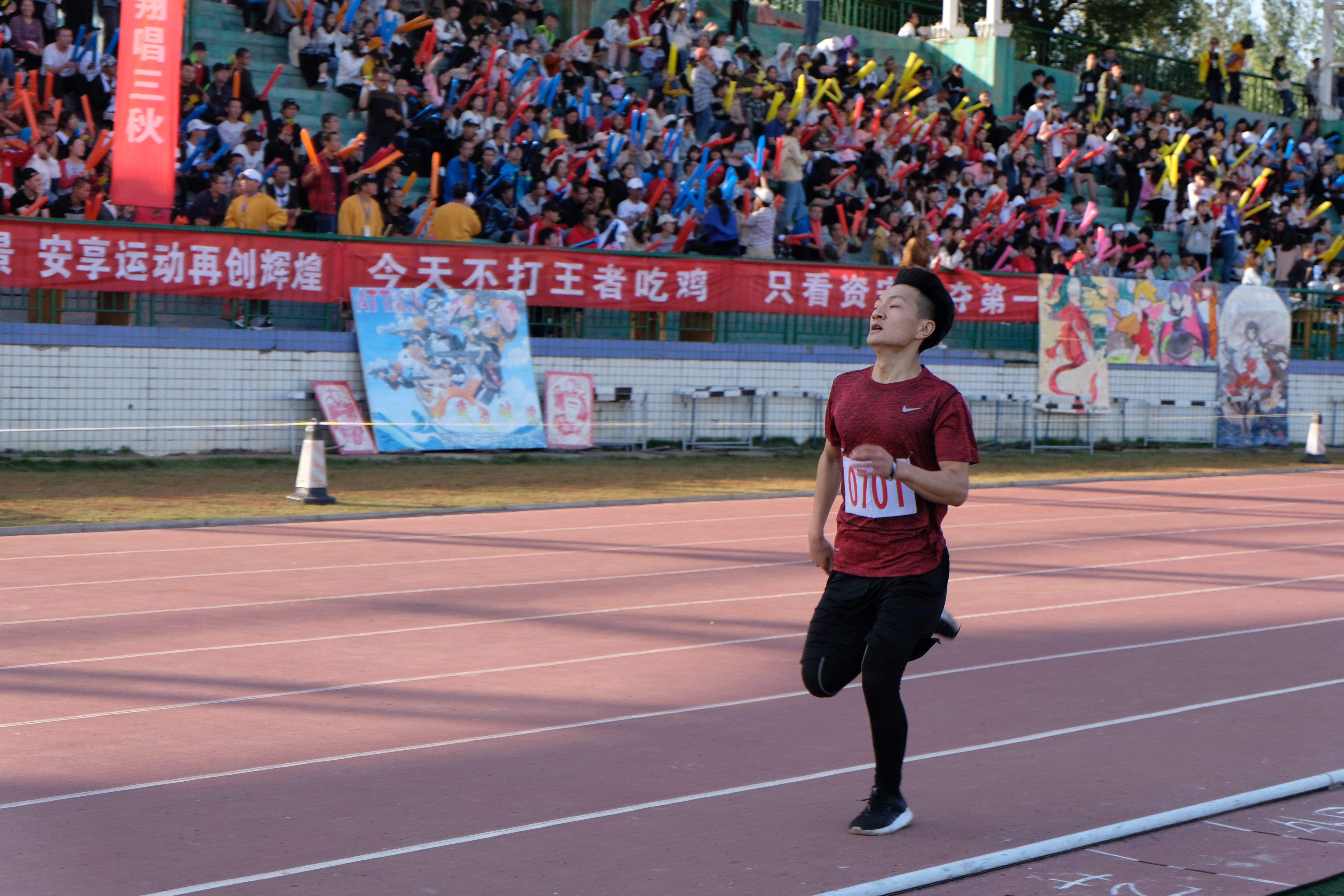 铿锵玫瑰,不惧烈阳,不畏风雨。首先进行的是女子1500米的预决赛。“各就各位!”、“呯!”,秒表一按,枪声一响,一起,一跃,运动健儿们瞬间如奔腾的马儿,在赛场上驰骋。“商学院,加油!商学院,加油!”观众台上,呼喊声,雷鼓声,呜呜号声,尖长哨声,如长江巨浪,一阵高过一阵。缤纷彩旗,橙蓝气棒,是为商院的青春激情。再看男子组的比赛,听,他们的呼吸声低沉却有力,看,他们快而稳的节奏。1500米的征途磨的是意志,练的是坚持!在最后的冲刺阶段,运动员们一鼓作气,冲向终点。