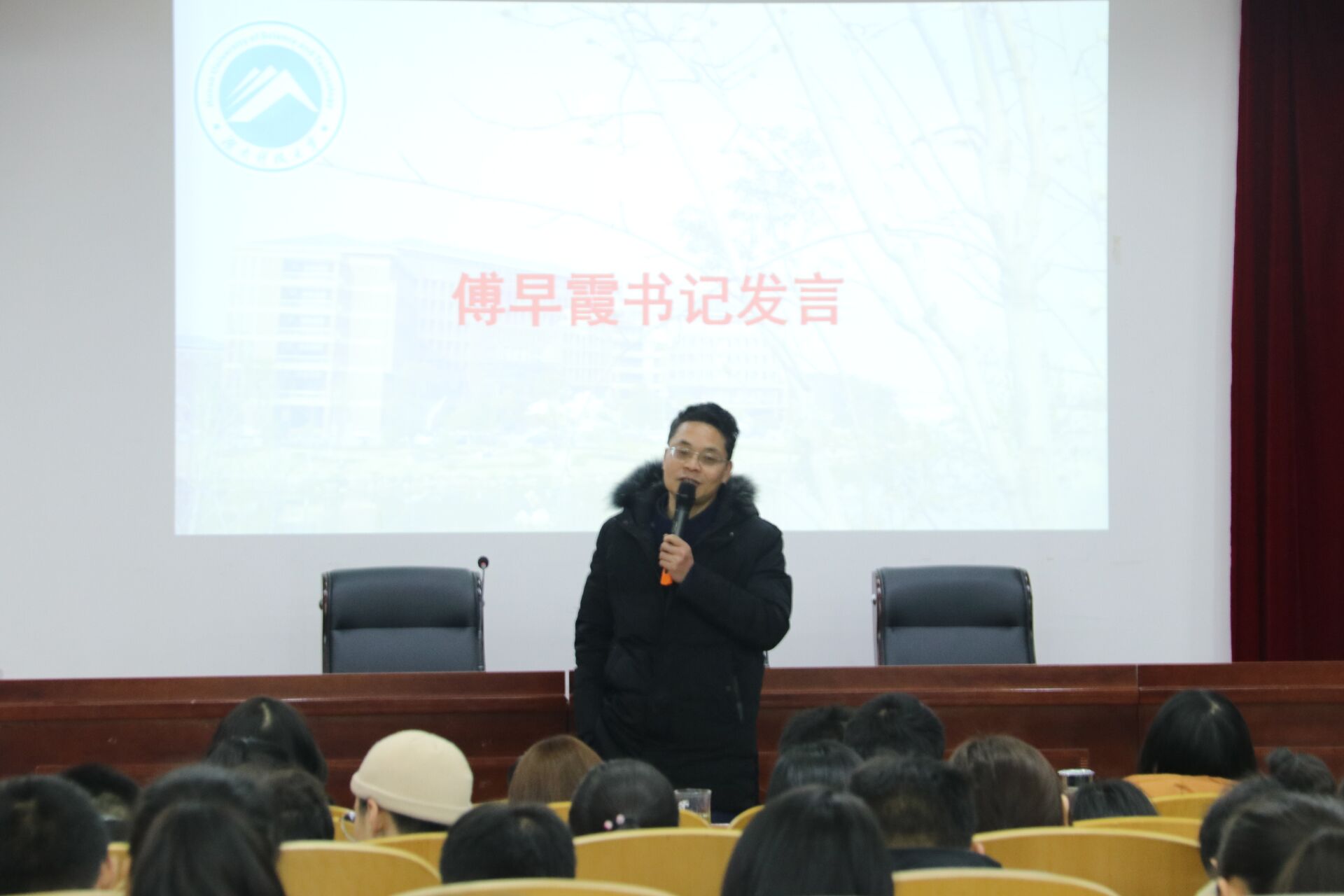 会议开始由团委第一副书记石阿霞作代表性发言。首先总结了2018年举行的迎新晚会及运动会等诸多活动,并对为此付出时间和精力的同学们表示了衷心的感谢。接着,石阿霞对全体学生干部提出了在接下来学习工作中的希望与意见。第一,要学会思考、解决问题。只有在不断思考和解决问题,我们的各项能力才能得到不断地提升,看问题的角度也才会更加多样化。第二,做到严于律己、发奋学习。最后石阿霞对广大学生干部明确了新学期的新任务。
