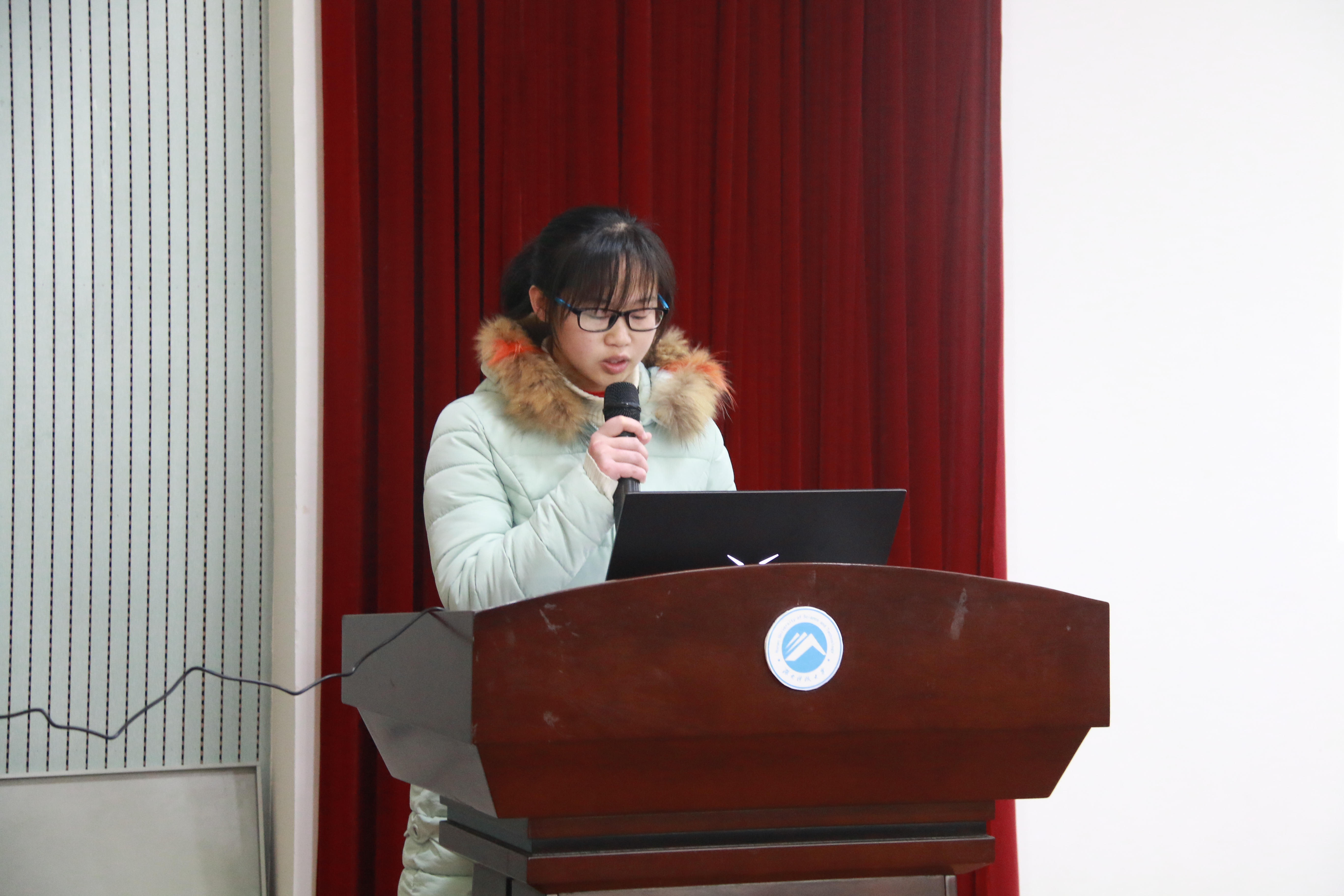 会议伊始,主持人首先对在场的所有人表示了节日祝福,并宣布会议正式开始。随后,优秀班集体代表依次上台发言。首先上台的是16级会计2班代表罗凌慧,她简要介绍了本班的卓越成就,接着便对上学期的工作作了总结,并从学习、生活、日常管理三个方面对本班日后发展制定规划。同时,她在会上也强调了班级凝聚力的作用,“班级凝聚力是一个班的灵魂,其还可以反向推动一个班的发展。”紧接着是16级年级长方双玉发言,她强调同学们要增强对学院的认同感,并呼吁各位班长团支书尽最大的努力为同学们和学院服务。