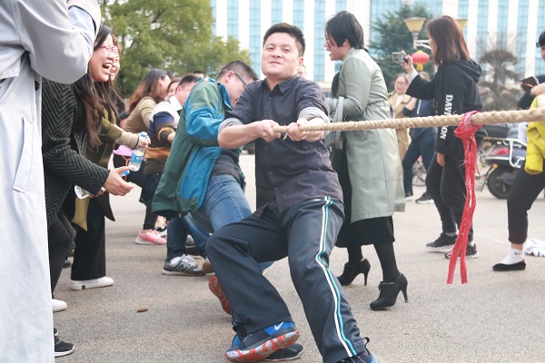 2019年3月19日15:45,湖南科技大学商学院教职工拔河比赛于第三教学楼楼前正式开赛,本次活动目的在于活跃学院教职工文化生活、增强学院活力;促进学院组织自身建设,改善整体工作水平;提高教职工的工作凝聚力,促进学院“双一流”建设。