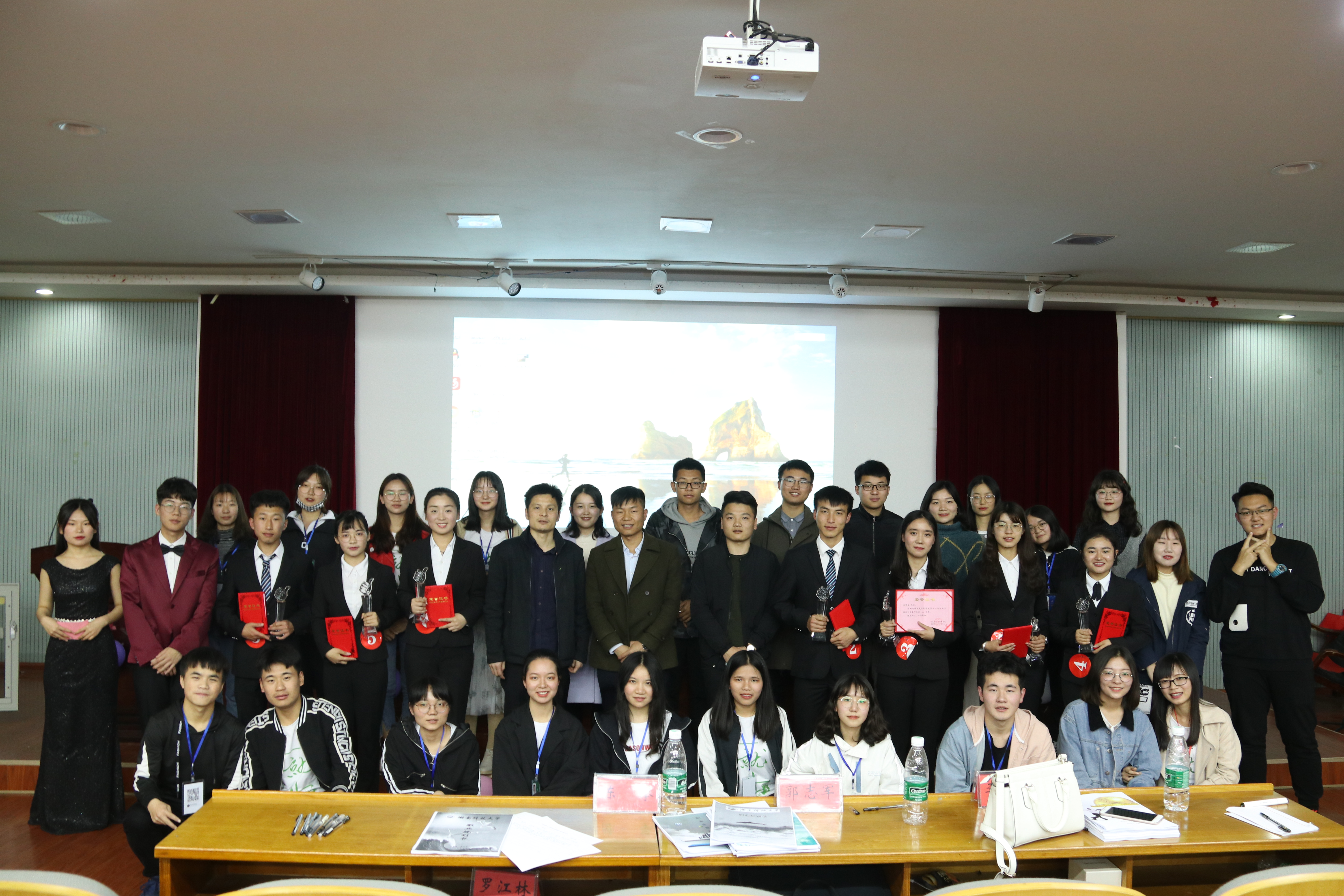 本次比赛共有两个环节:选手演讲及评委提问与点评。选手以四人一组的形式分别进行现场展示,展示结束后集体上台接受评委提问,评委根据选手综合表现进行现场打分。各选手结合PPT演示文稿,对自我认识、外部环境进行了全面的分析,并明确提出了未来职业发展目标以及具体实现方案。比赛中选手们把控住会场气氛,台风稳健,自信地阐述着自己的职业规划。接下来是评委现场提问环节,这十分考验选手们的临场应变能力,但各选手都不慌不忙,冷静应对,给出的回答有理有据、逻辑清晰,评委们也相应地给出了细致的点评和建议。经过激烈的角逐,刘佳妮与谢娇两名选手凭借出色的表现荣获一等奖。