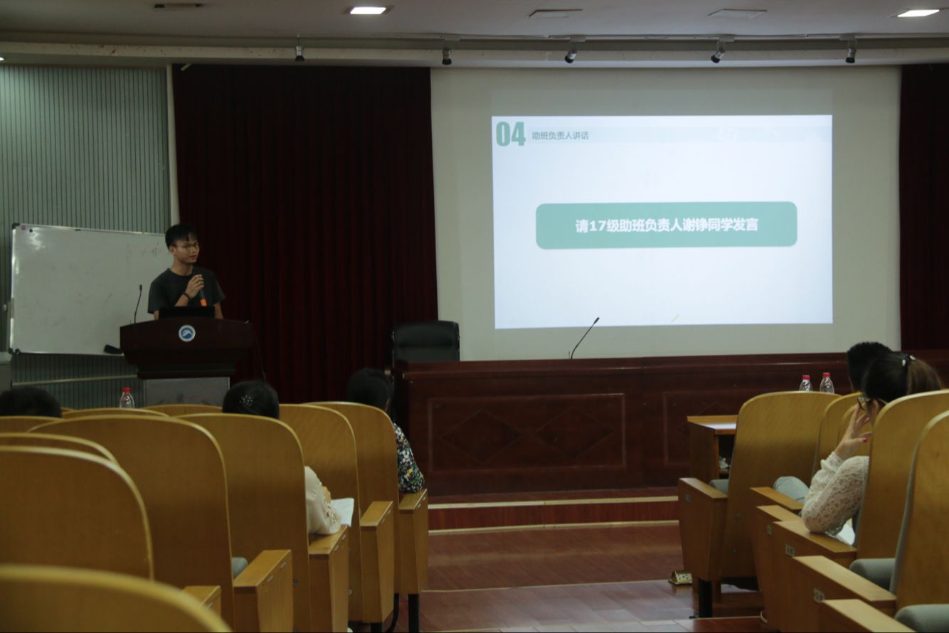首先,童杰成指出学科竞赛的重要性以及助班们要积极鼓励新生参加个学科竞赛,强调注重学生能力的全面发展。紧接着,16级代表电商1班助班雷绳富和人力3班助班李明珠以自身经历为基础向全体助班讲述了助班工作应注意的问题及助班工作的重要性和工作职责。心理健康工作指导老师罗江林从心理健康知识出发,讲授了助班们如何应对新生各个不同时期的出现的心理问题,强调了必须高度重视新生的心理变化心并及时发现问题。助理班主任负责人谢铮作为全体助班代表进行了深刻的发言,其表示,助理班主任对于新生成长影响作用重大重大,并对助班们应该如何处理新生所出现的各类问题提出了自己的见解。