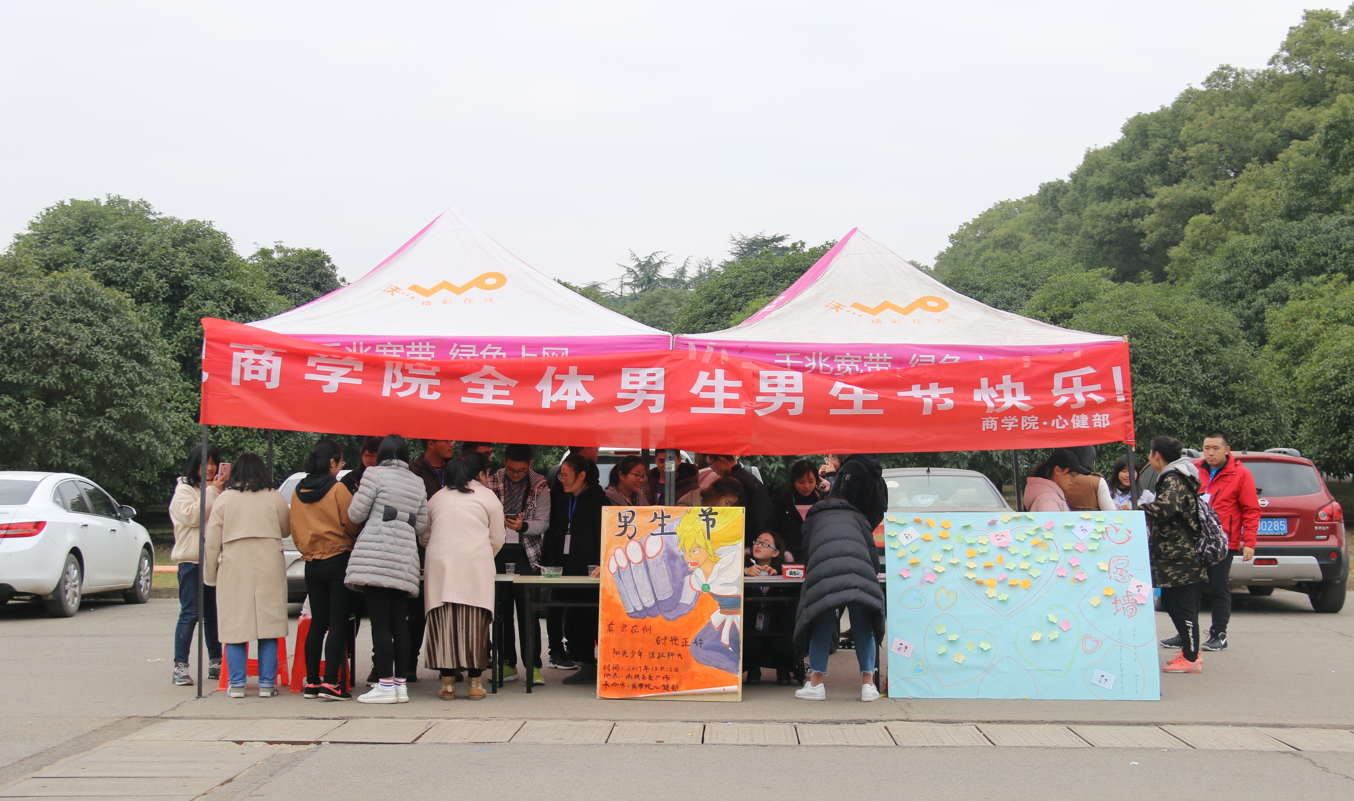 12月12日为我院一年一度的男生节。当天举办了以班级活动和部门摆点活动为主要内容的男生节特别活动,其中摆点活动由我院心理健康教育部承办开展。该系列活动面向商学院全体学生,旨在突出男生特色、展现男生魅力、增进同学间感情以及丰富校园生活。