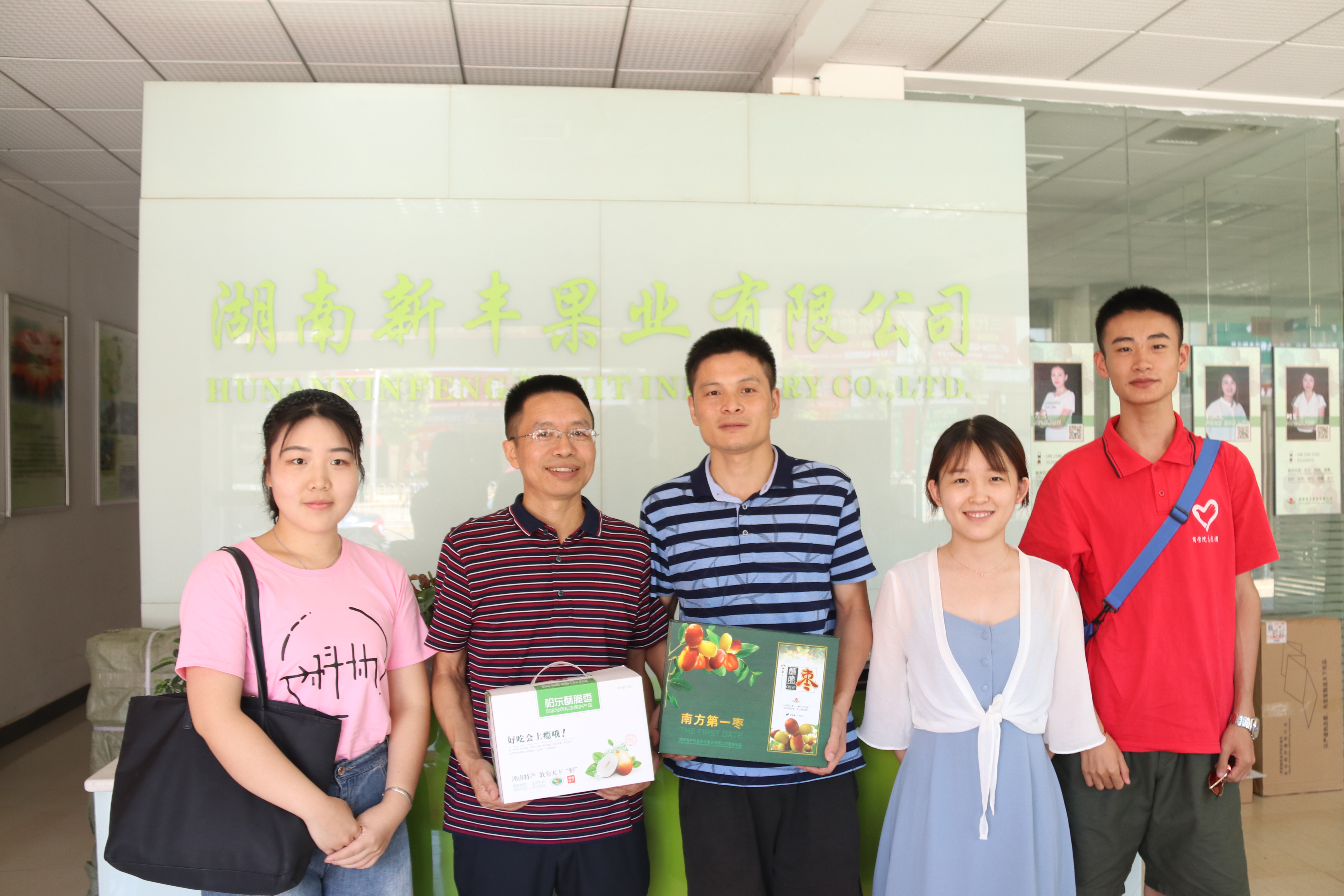 新丰果业有限公司成立于2001年,是一家集研究开发、推广国内外果树优良品种,为果农提供产前、产中、产后全方位服务的高科技、外向型的果业企业。谈及公司的创办,曾建新表示公司十多年来坚持西欧枣业产业化的道路,致力于打造南方高档鲜枣品种。调研小组发现正是因为这份对枣业的执着,“祁东酥脆枣”这一品牌才得以名扬,连续十年被评为“衡阳市农业产业化龙头企业”。通过交流调研小组了解到公司有明确的发展目标,近期公司拟定把果园做成连锁品牌,建立体验园,将农业、信息技术以及绿色旅游业相结合,形成品牌效应。