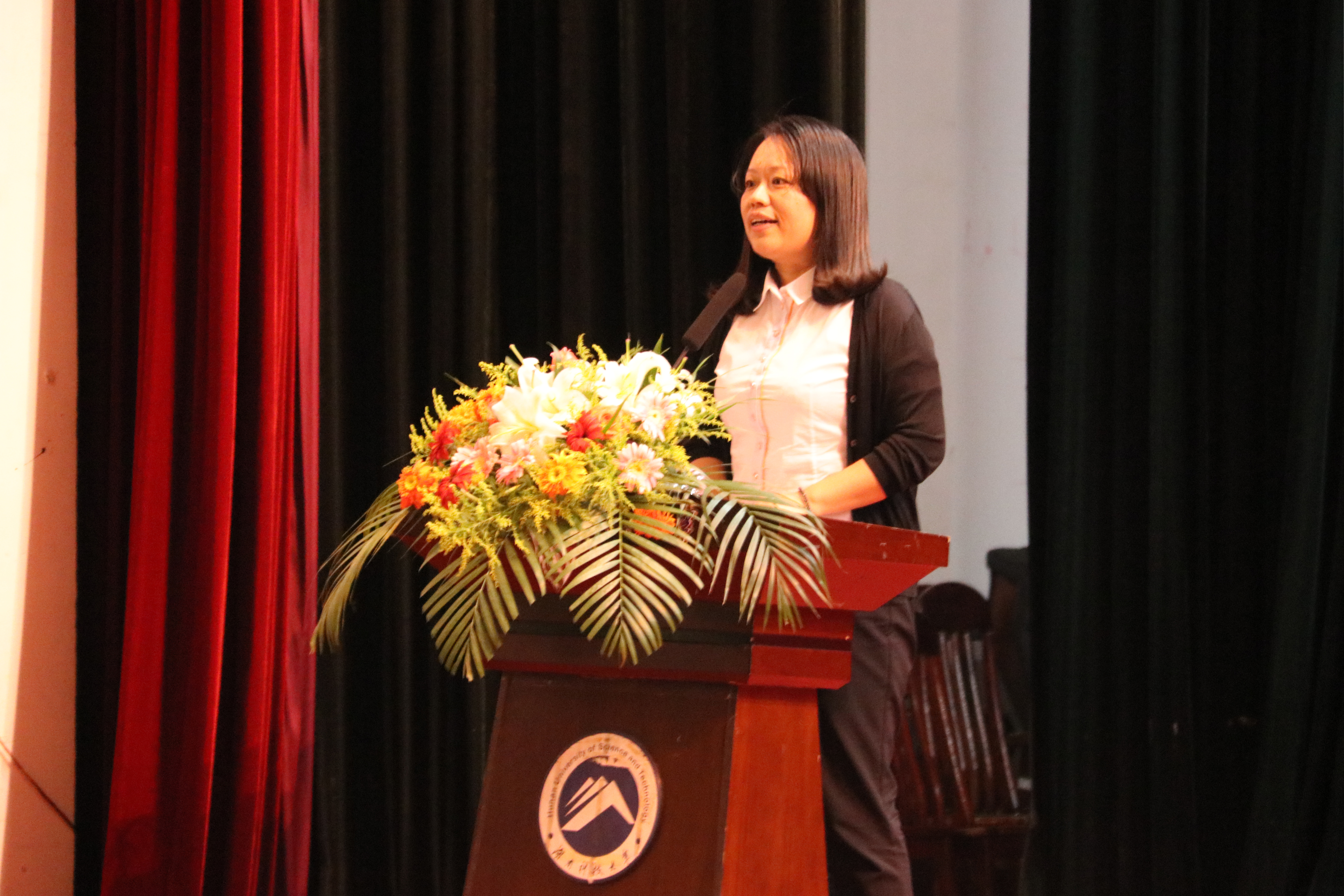 “起来,不愿做奴隶的人们……”庄严的开学典礼在慷慨激昂、奋发向上的国歌声中拉开了序幕,在商学院党委副书记傅早霞的主持下,商学院优秀教师代表罗喜英首先发言,来自会计系的罗喜英老师从会计专业的角度,以“请做好自己的人生报表”引入讲话,从“做一个有目标的人、“做一个有格局的人”、“做一个有担当的人”和“做一个体健的人”四个主题指导同学们的大学学习生活方向。“有刻度的人生才值得回味,认真做事,用心体会,每一步留下扎实的刻度,请做好自己的人生报表。”罗喜英老师如是说。