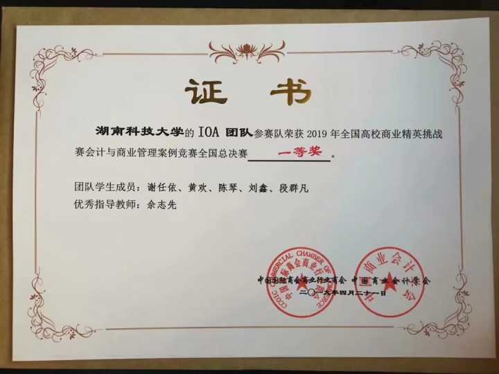 2019年4月20日,“2019年全国高校商业精英挑战赛会计与商业管理案例竞赛”总决赛在河北地质大学顺利举行,由佘志先副教授指导的商学院参赛团队,荣获大赛一等奖。